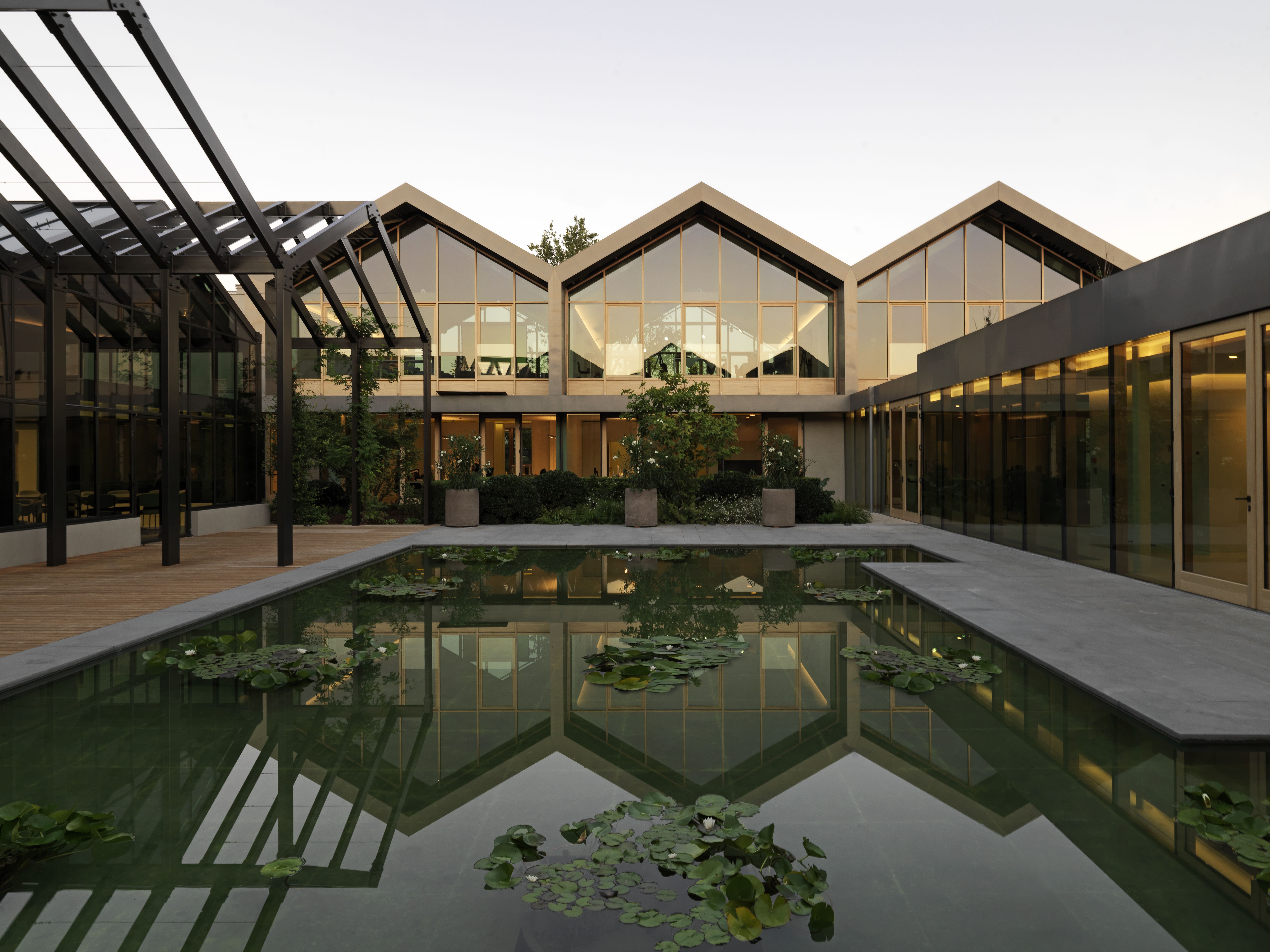 Built on a surface of 77,000 square metres, the complex covers about 11,000 square metres (20% of the total area) and includes spaces dedicated to offices and training, the Research and Development laboratory, the production plant, the warehouse, and a large central greenhouse that works both for a restaurant and a co-working area.